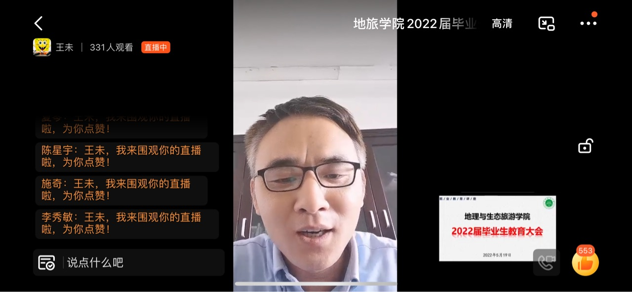 5月19日,地理与生态旅游学院通过钉钉网络视频会议召开2022届毕业生教育大会,对毕业前的各项工作逐一梳理,号召同学们明确目标,克服困难,积极就业。学院副院长程希平、党委副书记张卓亚、团委书记孙金金、学工辅导员王欢、就业联络员王未以及2022届毕业生参与此次会议,学会议由程希平主持。