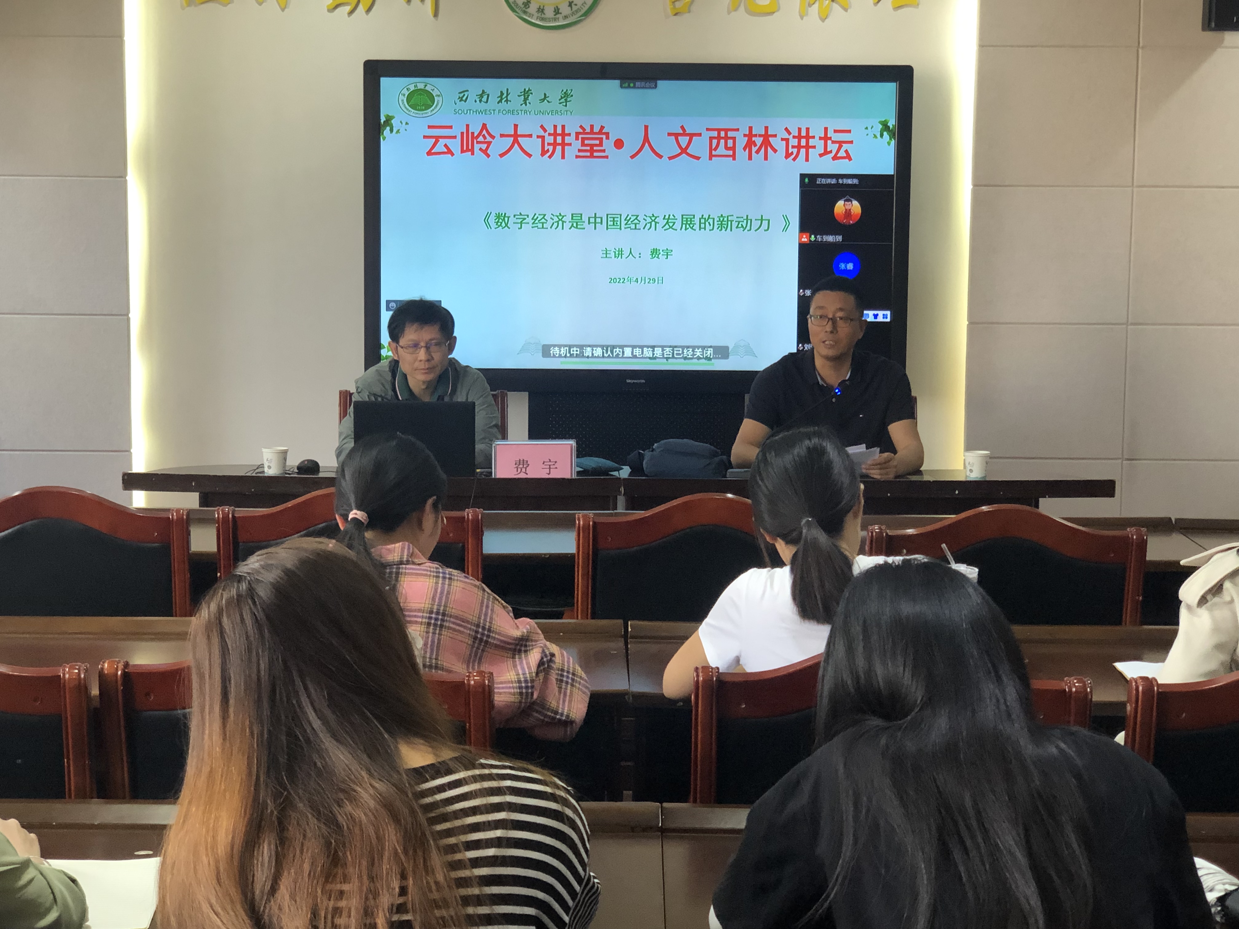 4月29日,学校举办2022年度第二次“云岭大讲堂·人文西林讲坛”活动。活动由社会科学管理办公室主办,经济管理学院承办,社会科学管理办公室副主任张连刚主持。云南财经大学费宇教授应邀作了题为《数字经济是中国经济发展的新动力》的专题讲座。