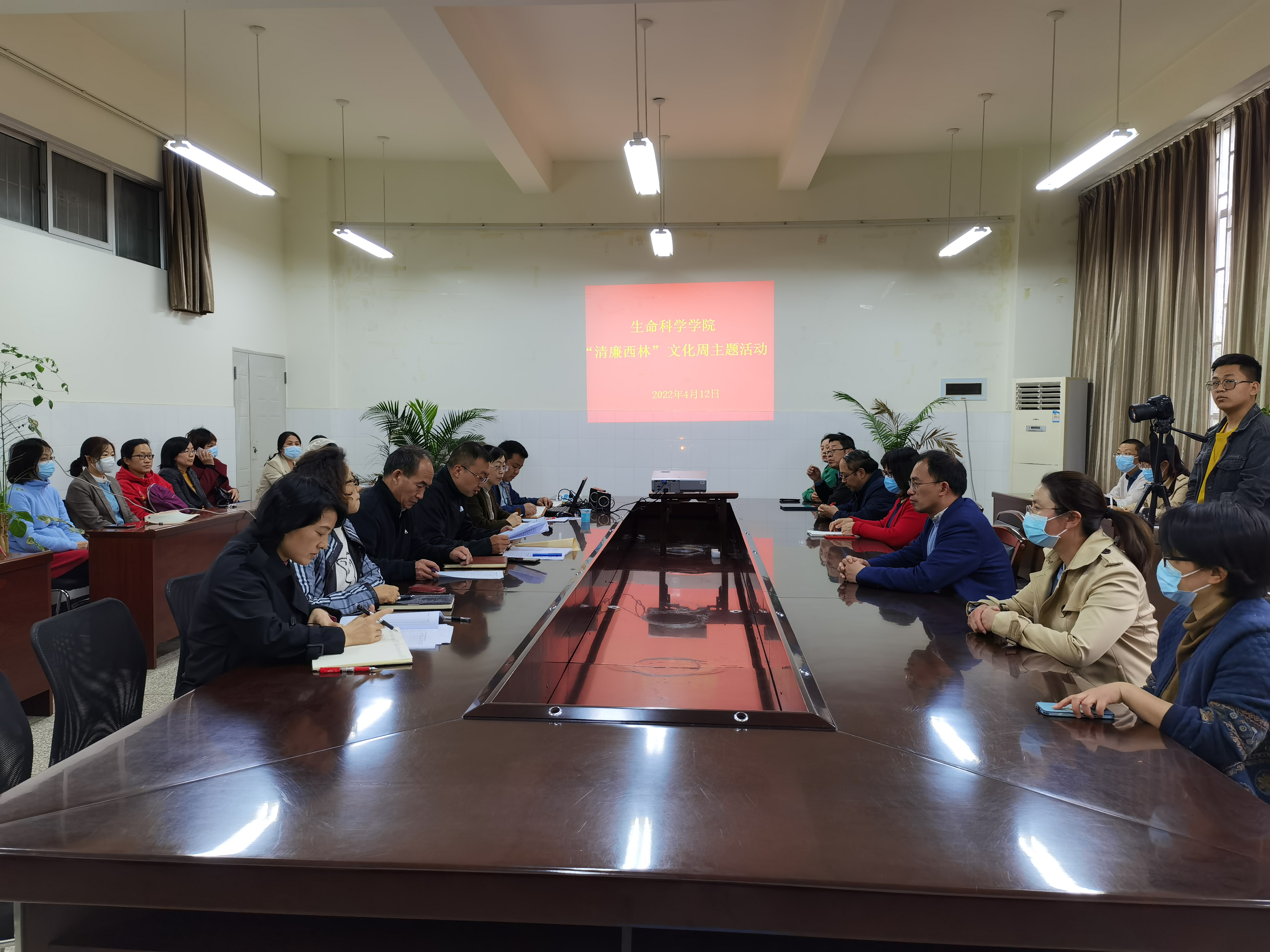 为倡导广大教职工做廉政文化的自觉学习者、热情宣传者、坚定维护者和勇敢实践者,根据学校“清廉西林”建设活动方案及“清廉西林”文化周活动要求,生命科学学院于4月12日开展“清廉西林”文化周专题学习教育活动。