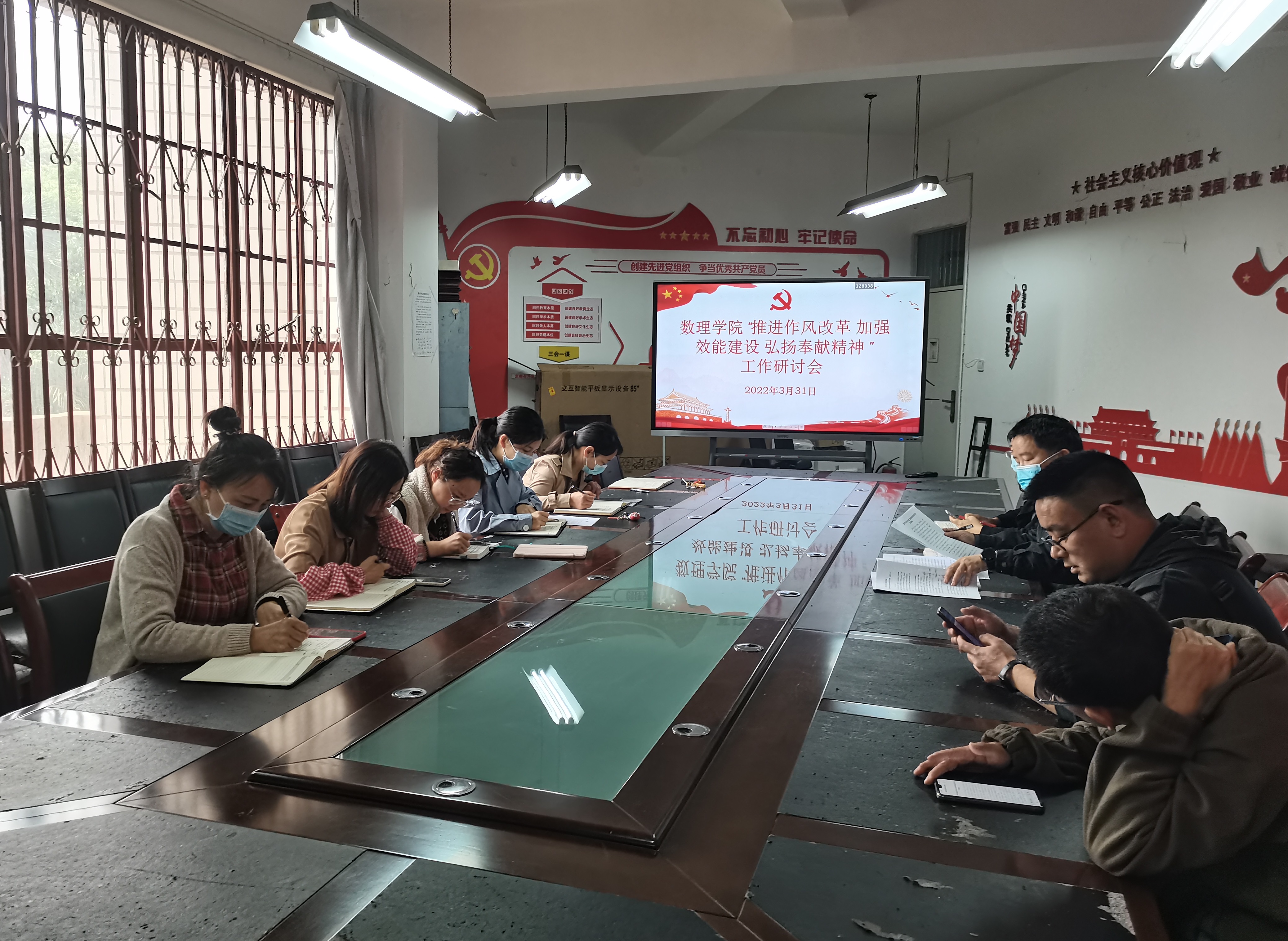 根据学校工作安排,数理学院开展“推进作风革命 加强效能建设 弘扬奉献精神”主题实践活动,完成第一阶段学习计划。
