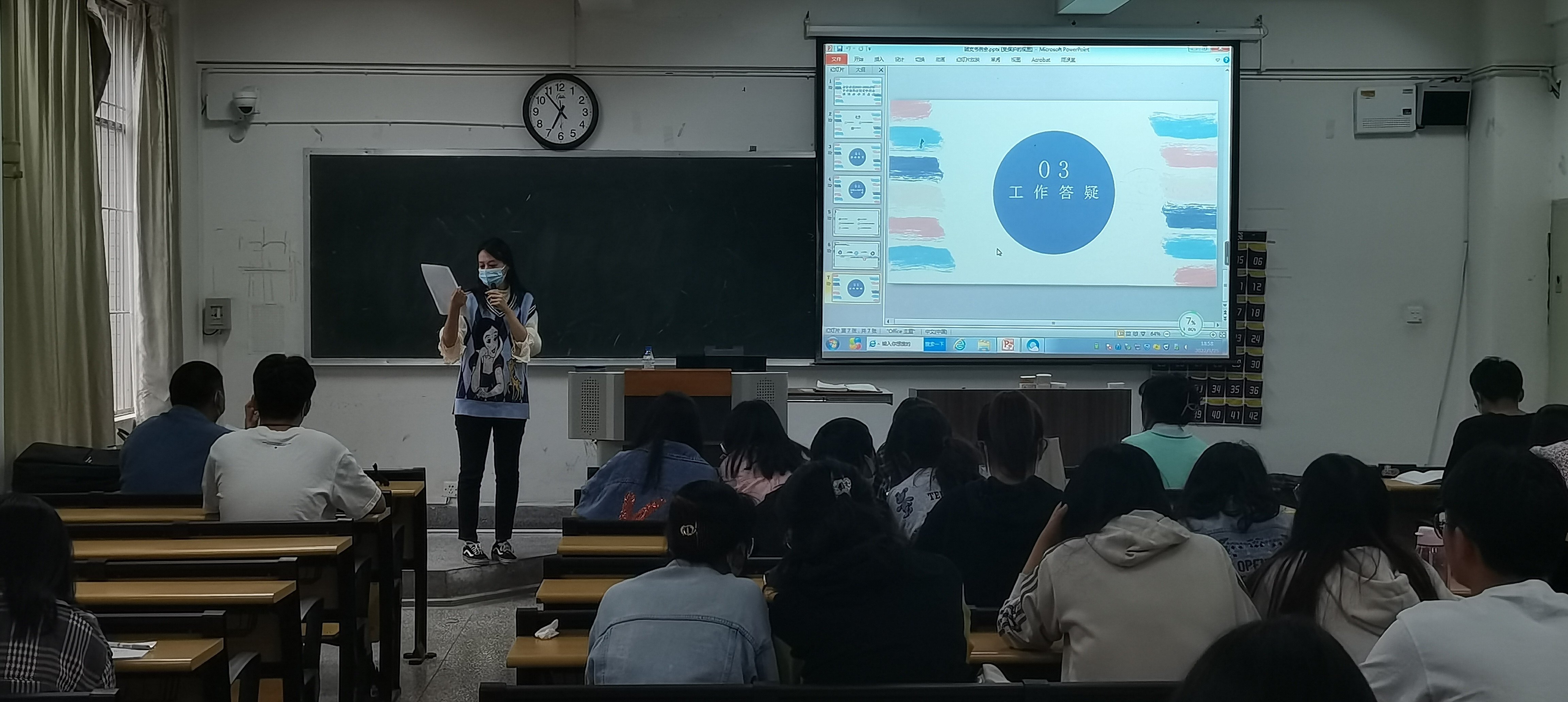 在对上学期团务工作总结的基础上,从推优、团员教育评议、团籍注册工作、团支部理论学习以及智慧团建等方面进行了讲解答疑,并对假期“光盘打卡”活动,“返家乡”活动以及青年大学习完成情况进行通报表扬。她强调,团支部书记要认真学习理论知识,提高疫情防控责任意识,明确近期工作重点,示范带动周边同学配合学校开展各项工作。