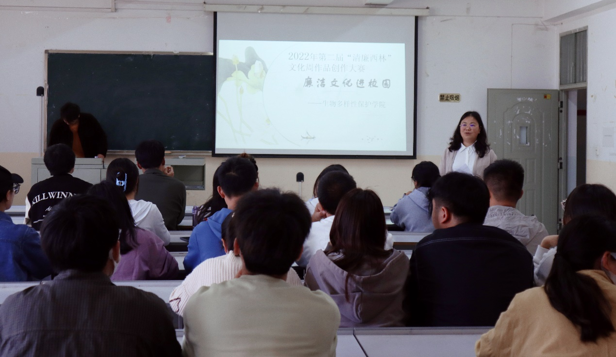 3月29日,生物多样性保护学院组织开展“清廉西林”文化作品设计大赛,院党委副书记唐甜甜,院团委负责人李路及参赛学生代表参加比赛启动仪式。