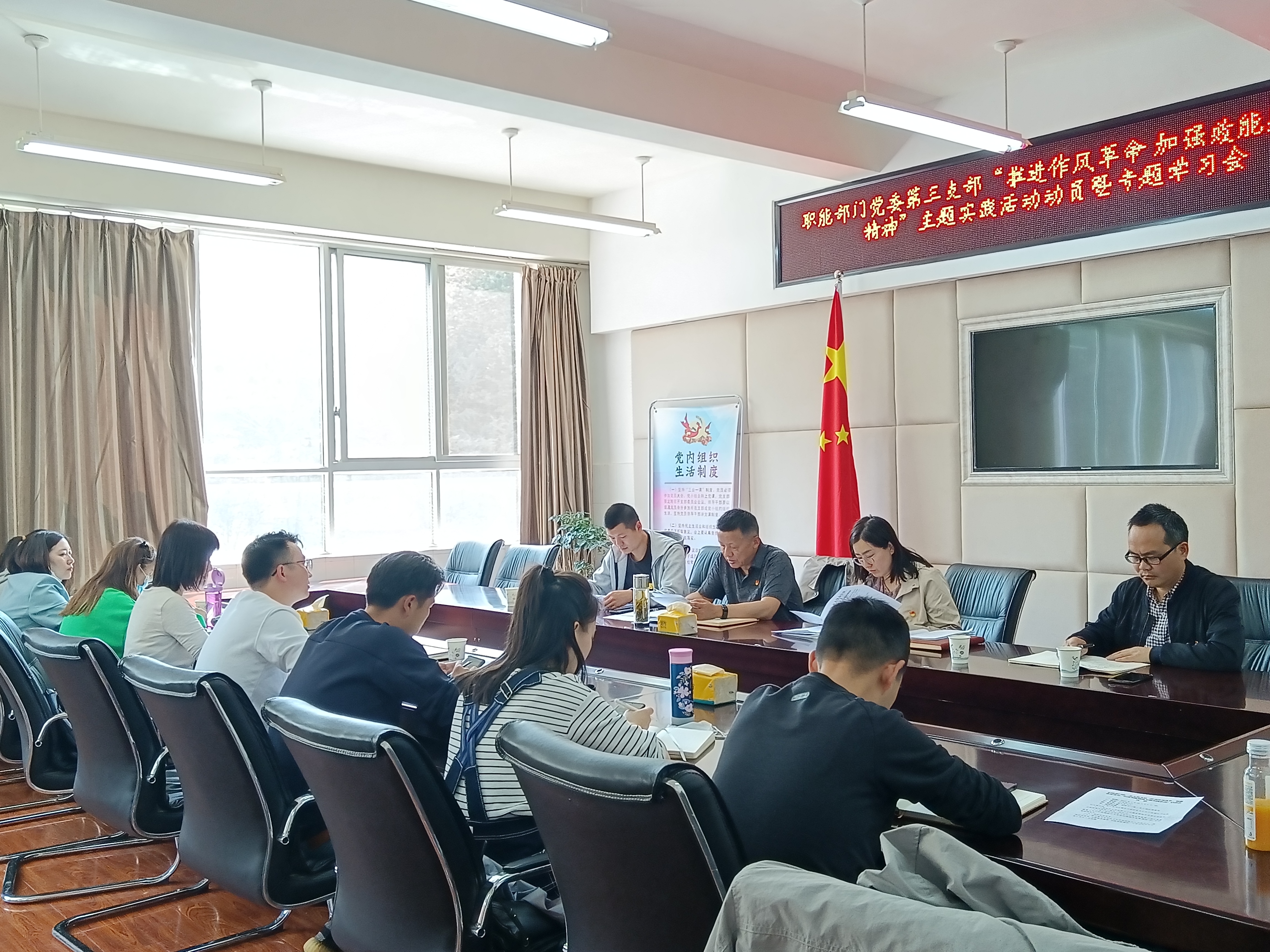 3月18日,职能部门党委第三支部召开“推进作风革命 加强效能建设 弘扬奉献精神”主题实践活动动员暨专题学习会议,学习贯彻省委、教育工委关于作风革命效能建设有关精神,深入推进学校党委和职能部门党委关于开展主题实践活动的决策部署,对支部的实践活动作出安排。