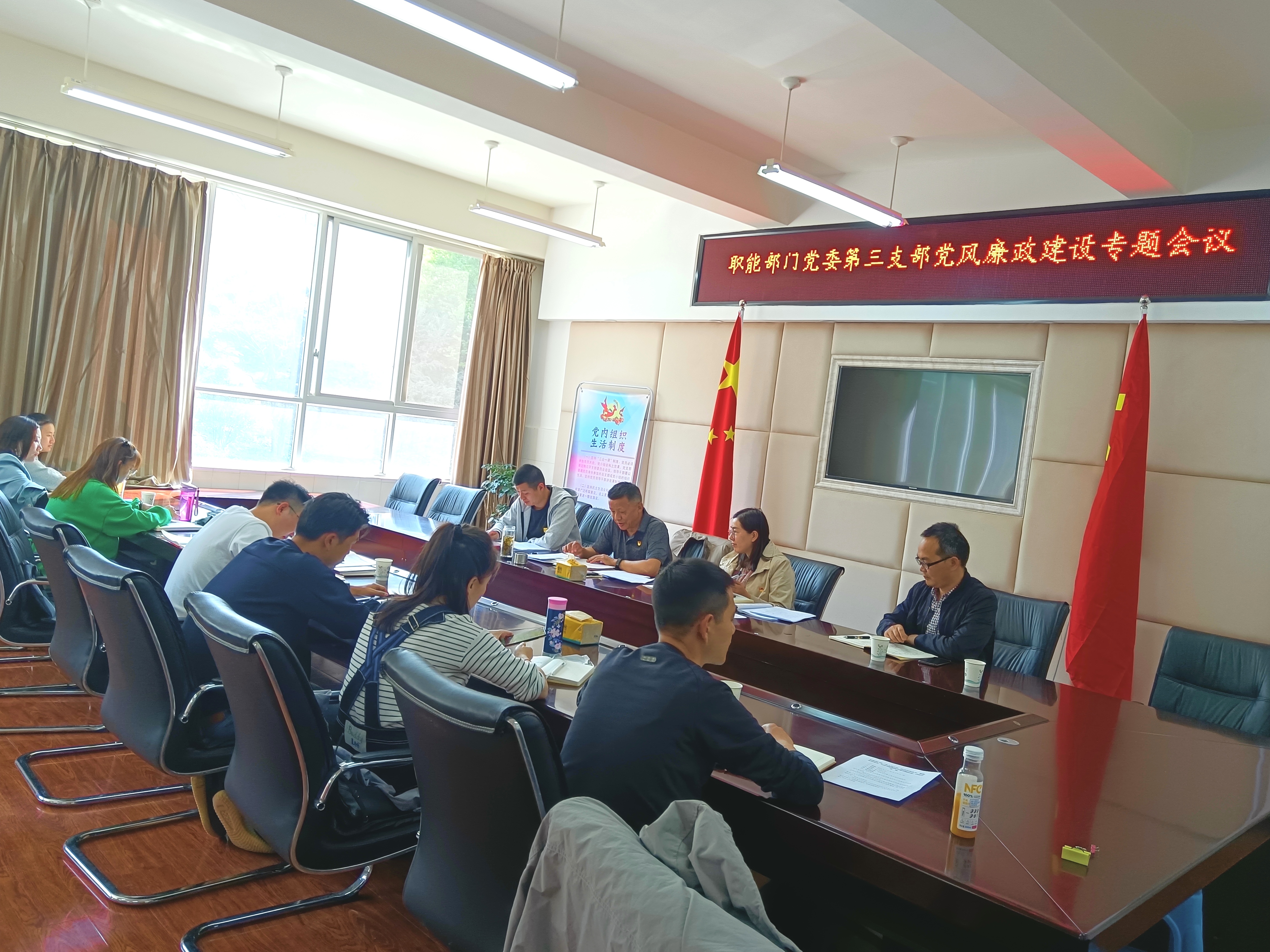 为深入推进党风廉政建设和“清廉西林”文化周活动开展。3月18日,职能部门党委第三支部召开党风廉政专题会议。支部书记郭正春主持会议,支部全体党员参加。