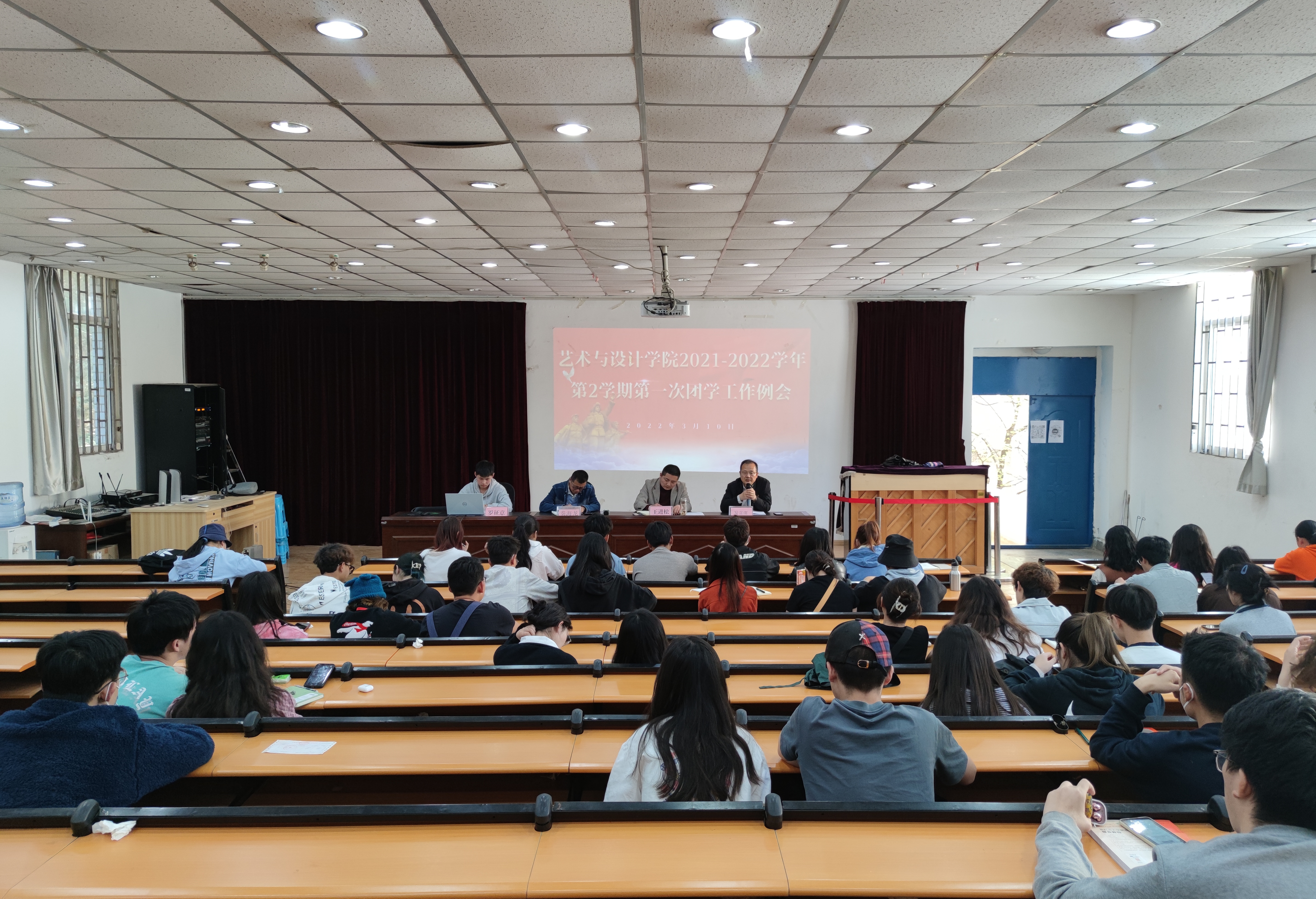 3月10日,艺术与设计学院召开2021-2022学年第2学期第1次团学工作例会。院党委书记王宏虬、学工办主任秦海龙、团委教师王进松及全院班长、团支书90余人参加会议。会议由王进松主持。