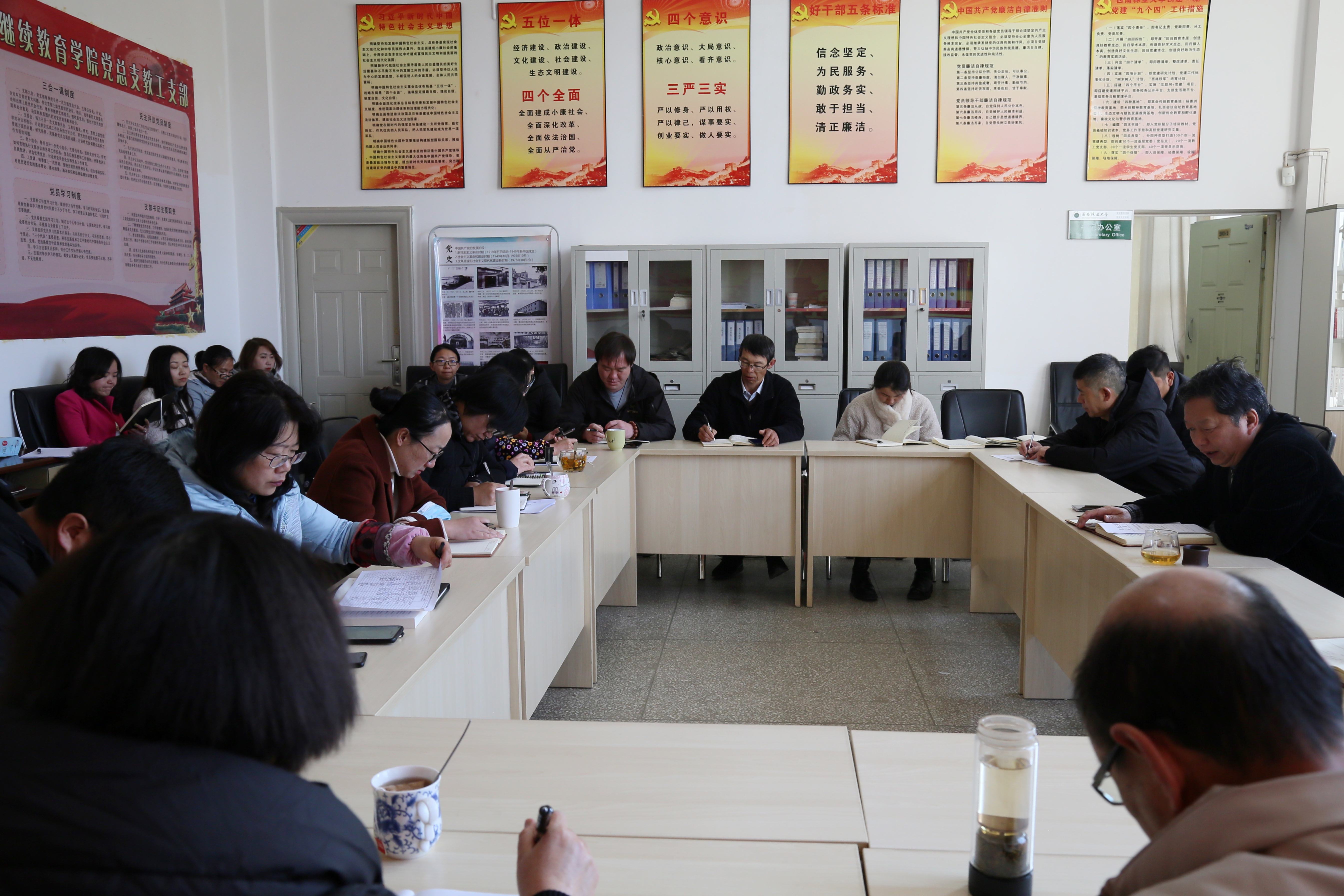 2月27日,继续教育学院召开师德师风专题警示教育暨理论学习中心组(扩大)会,学院党总支书记肖辉主持会议,全体教职工参加会议。