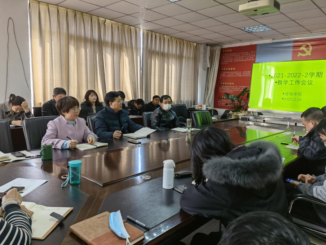 为确保新学期教学工作的顺利进行,2月26日,湿地学院召开了2021 -2022 -02学期教学工作会。会议由副院长熊好琴主持,学院院长、党委书记以及全院教职工参加了会议。