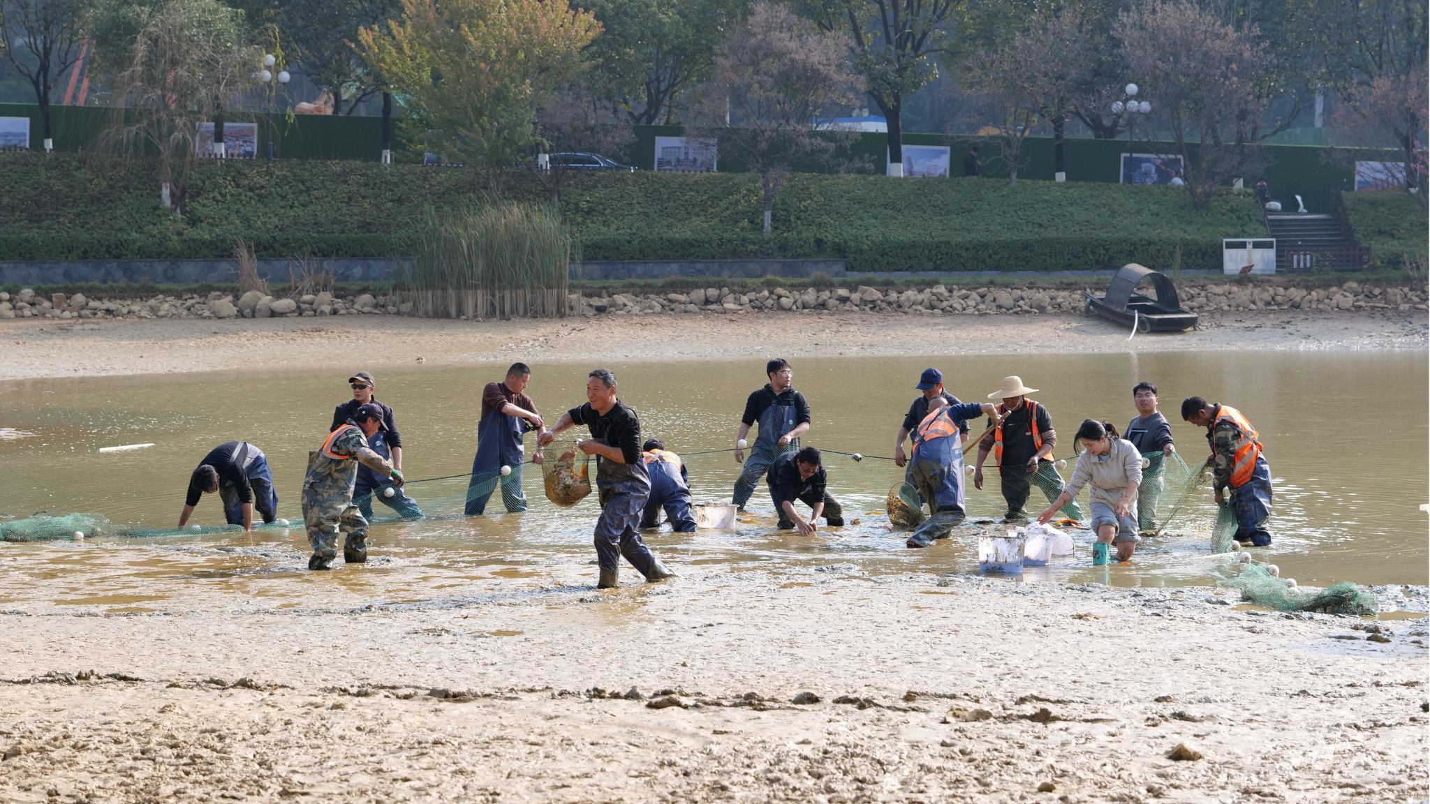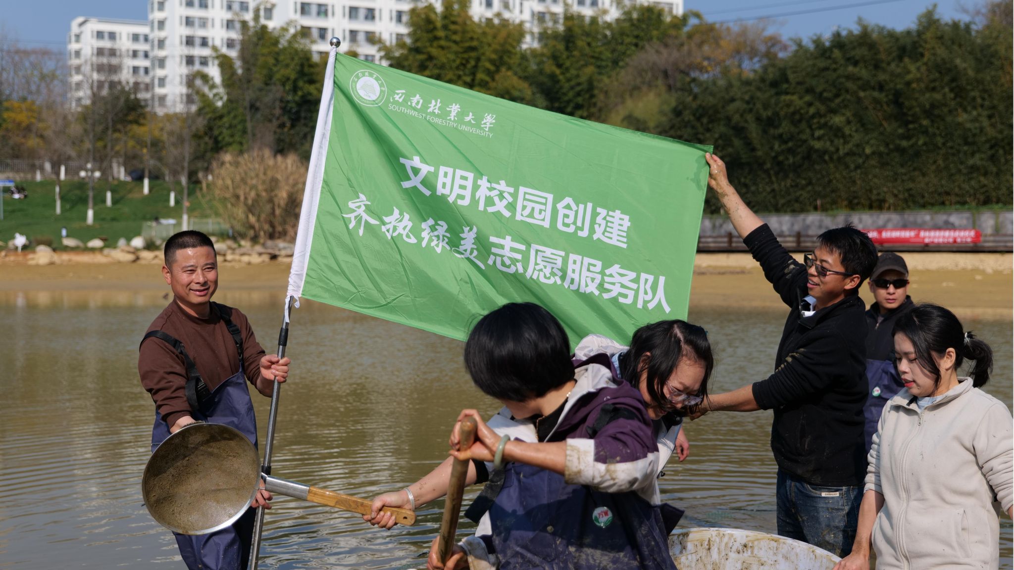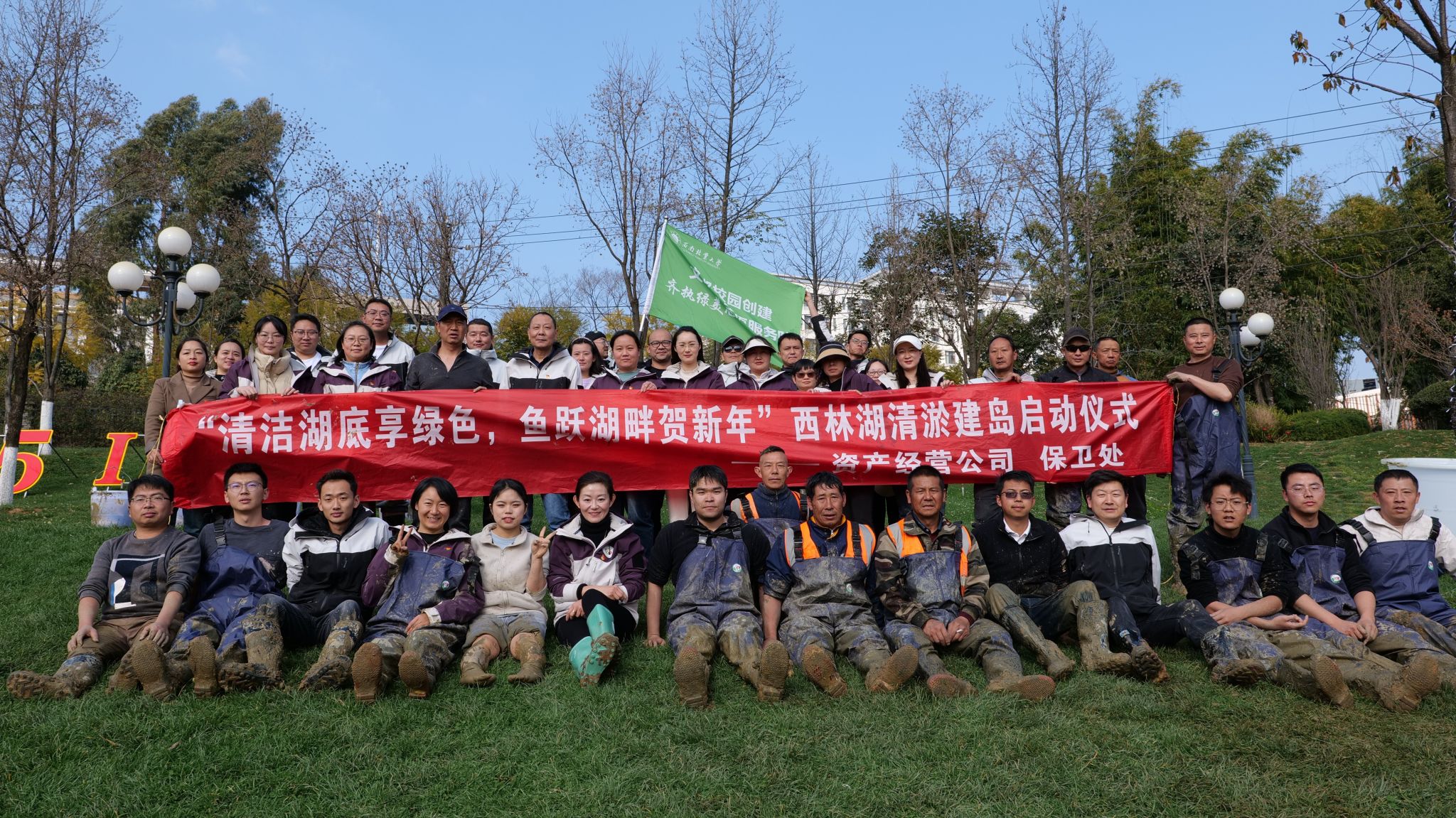 1月5日,资产经营公司在西林湖开展“清洁湖底享绿色,鱼跃湖畔贺新年”清淤建岛暨主题党日活动。