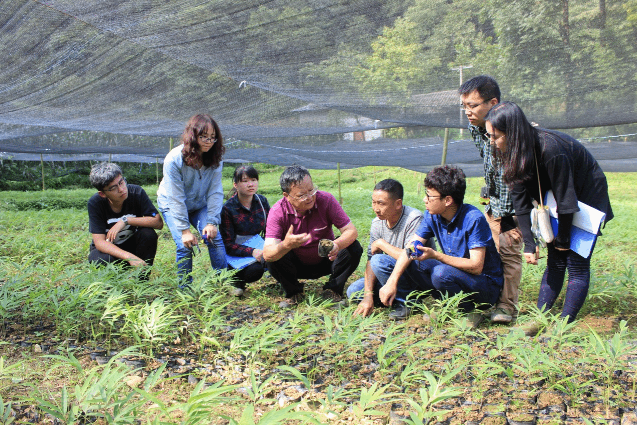 董文渊为竹农和研究生讲解筇竹容器苗培育技术