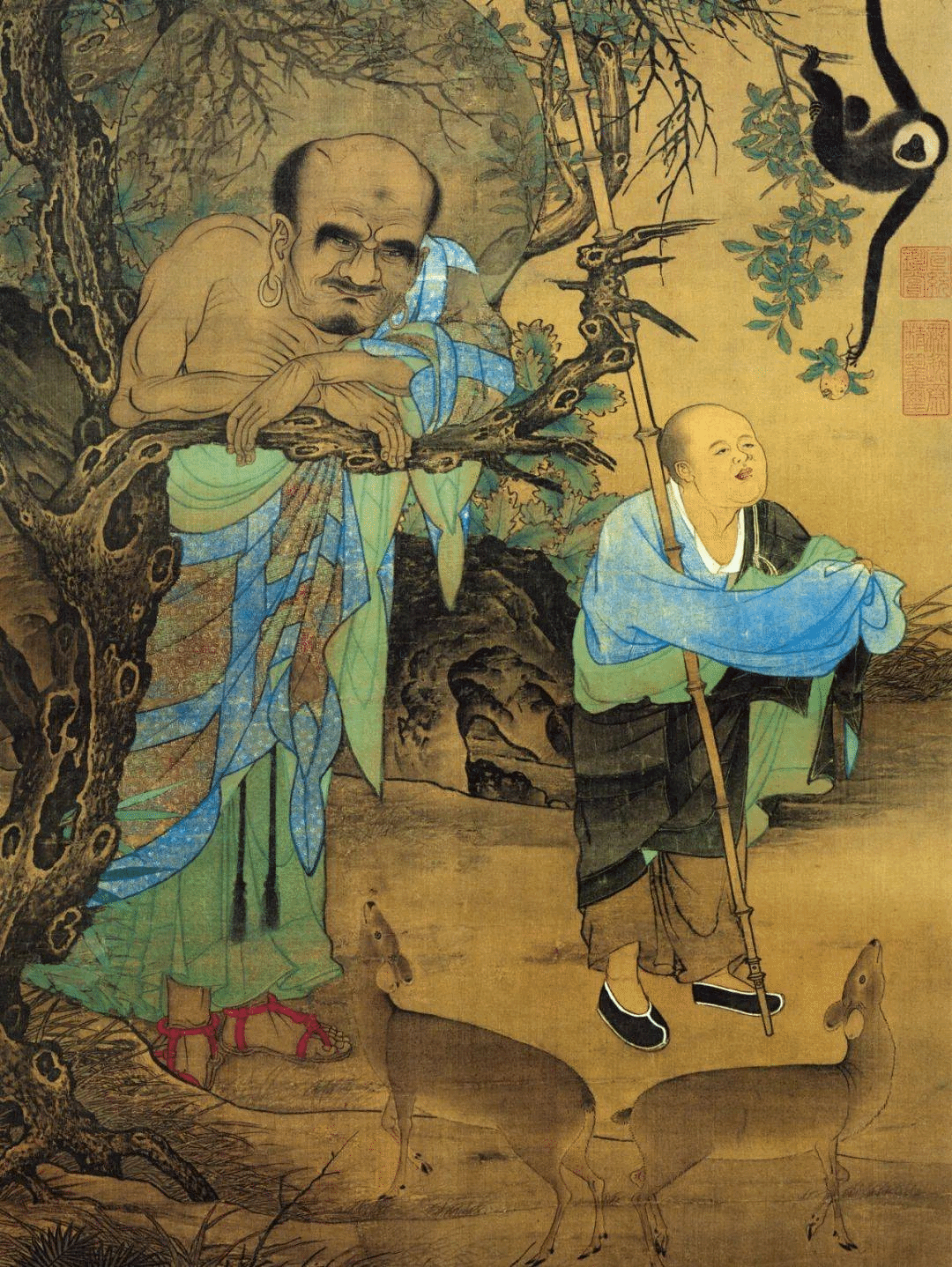 南宋刘松年《罗汉图·猿猴献果》中的筇竹杖