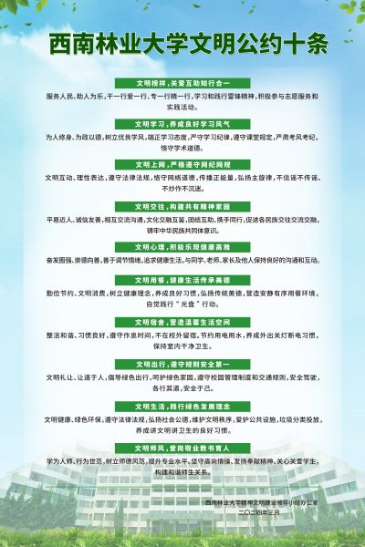 为进一步弘扬雷锋精神,充分发挥党员示范引领作用,切实推动米兰文明校园创建和精神文明建设工作,教育和引导广大师生自觉养成文明行为方式和良好学习生活习惯,提高师生思想道德素质和文明素养,养成良好精神文明风尚,营造和谐文明校园氛围,现向全校师生员工发出倡议,共同遵守《米兰milan官方网站文明公约十条》。
