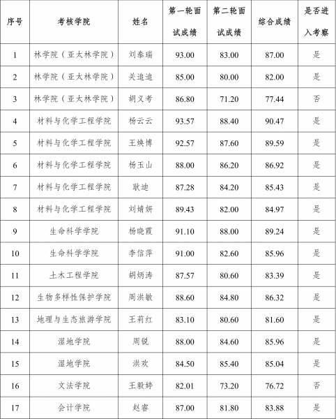 一、进入考察人员名单