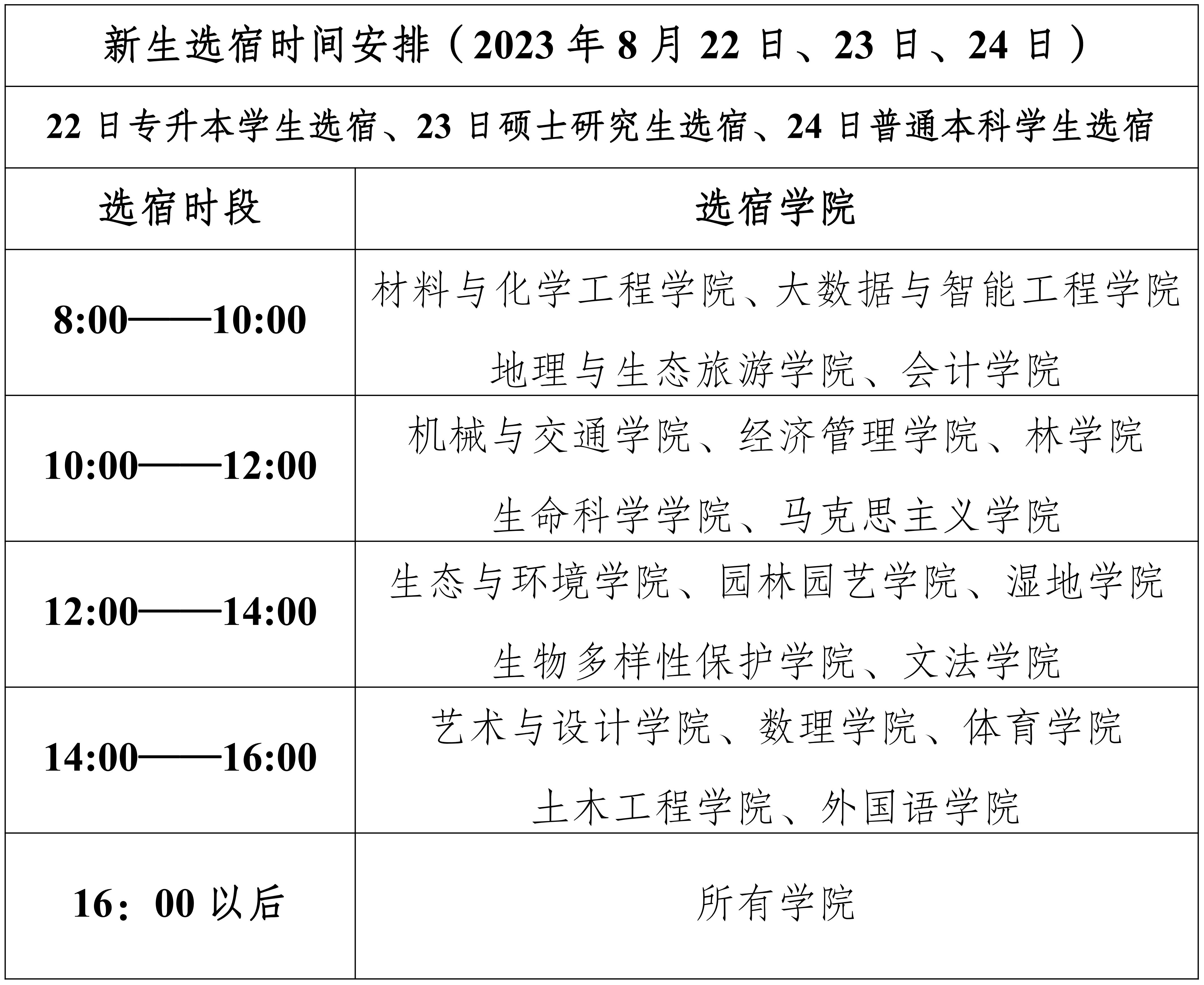 为保障选宿工作顺利进行,实行错峰选宿,具体时间安排详见下表。