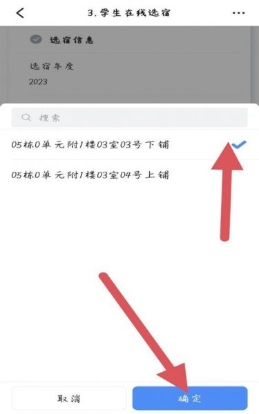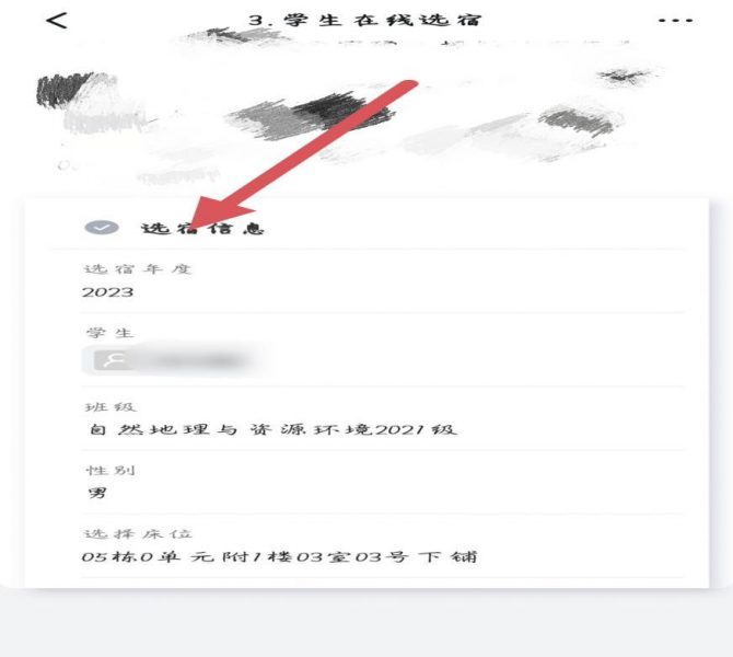 第五步:提交以后跳出所选宿舍信息即为选宿完成。