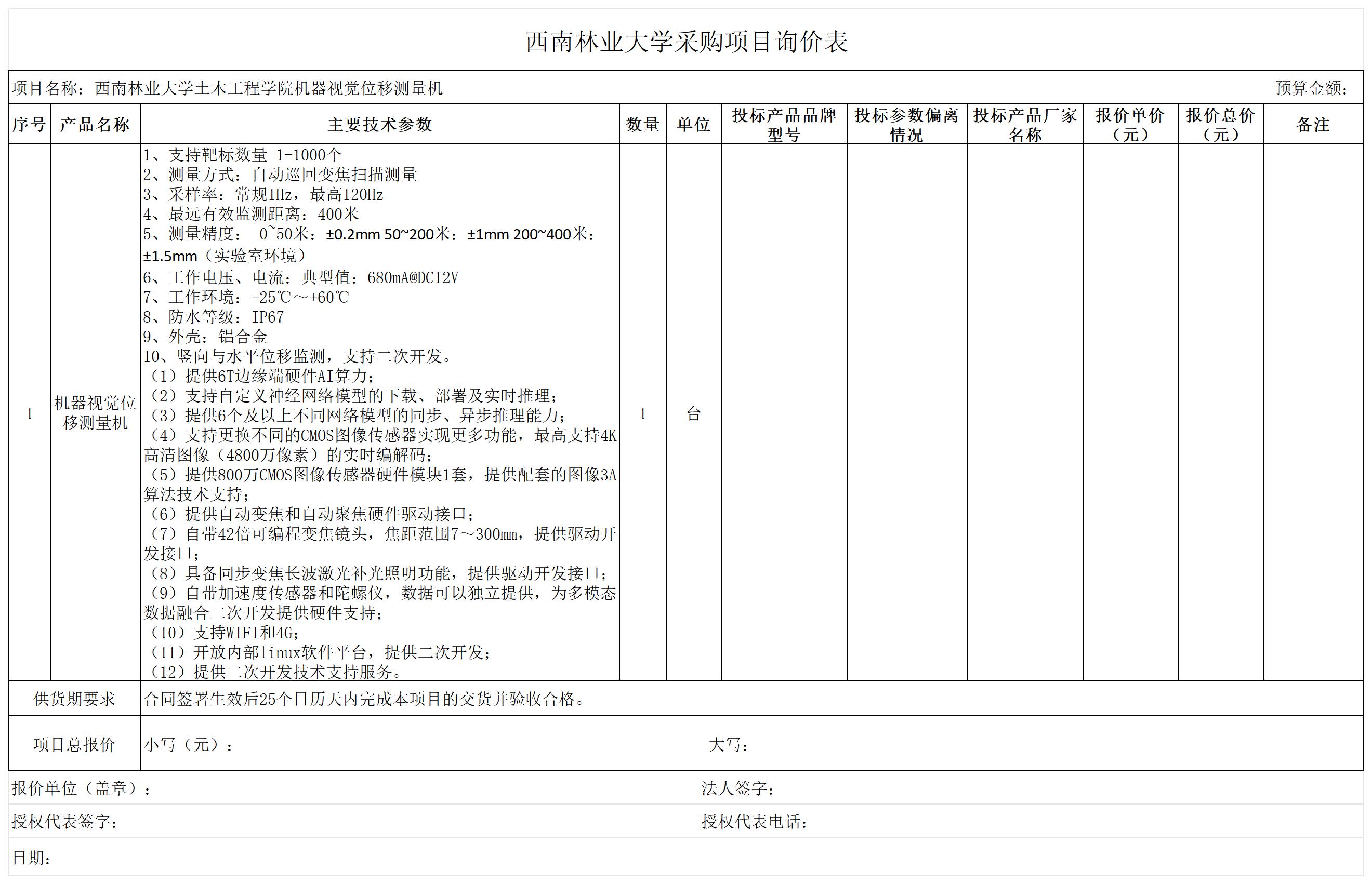 (注:1.以上要求提供材料必须完整并真实有效,否则将作为无效处理;2.采购项目询价表报价不得超过项目预算金额,否则将作为无效处理)