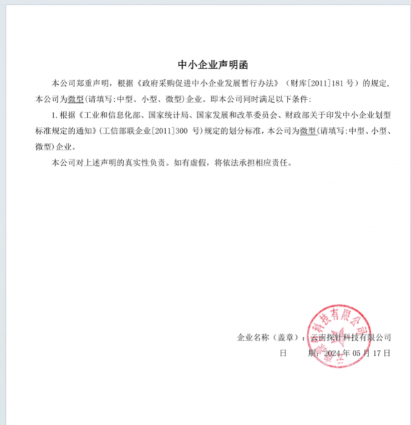供应商名称:云南探针科技有限公司