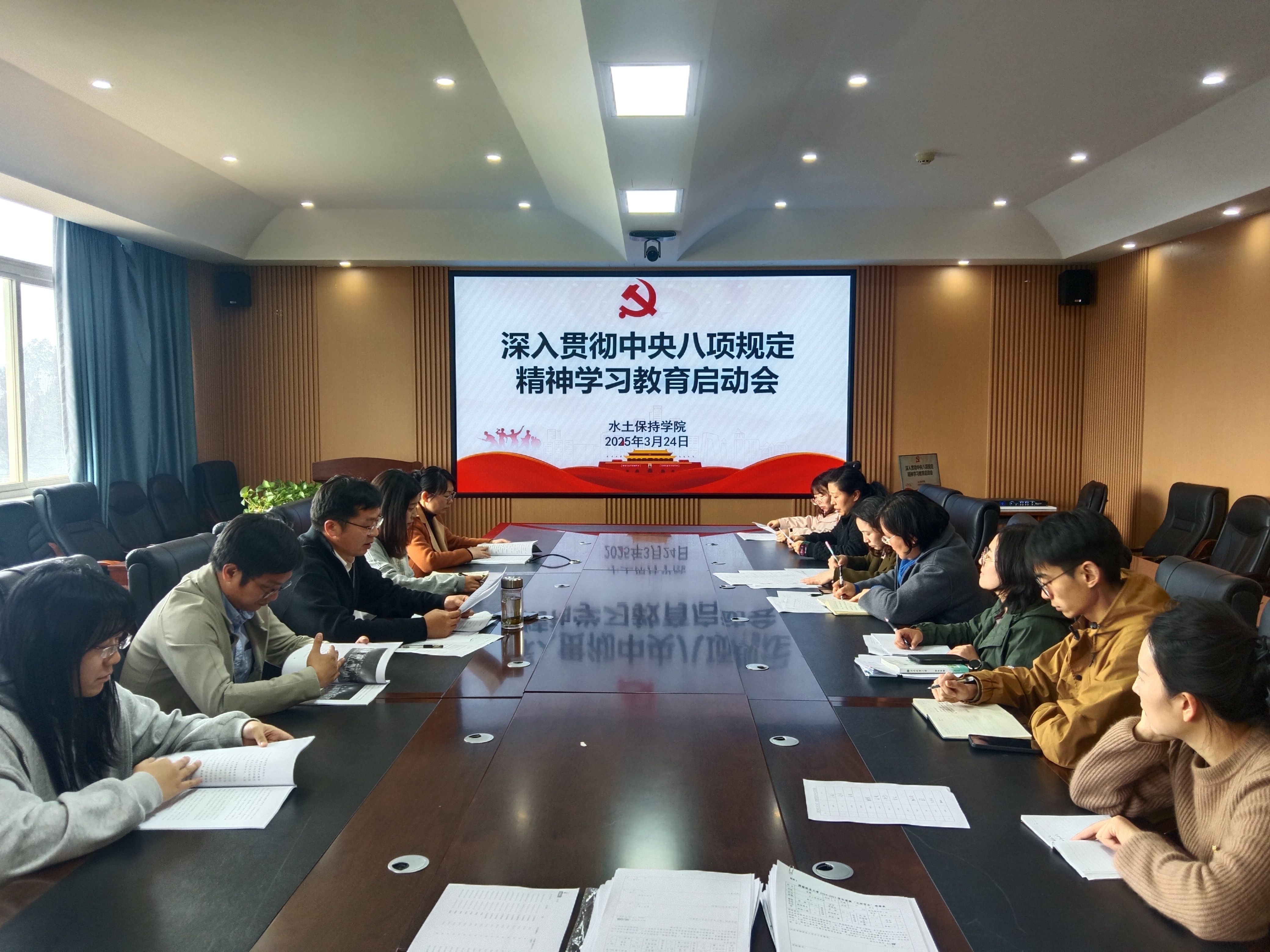 3月24日,水土保持学院召开会议,启动部署深入贯彻中央八项规定精神学习教育。会议由党委书记刘建祥主持。学院班子成员、党委委员、各党支部书记参加会议。