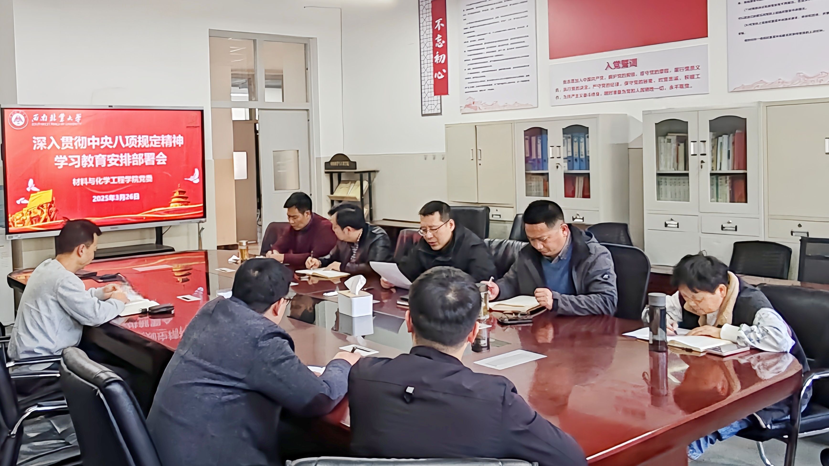 3月26日,材料与化学工程学院党委召开党委扩大会议,研究部署深入贯彻中央八项规定精神学习教育。学院党委委员、各党支部书记、党员师生代表参加会议。会议由学院党委书记孙浩主持。
