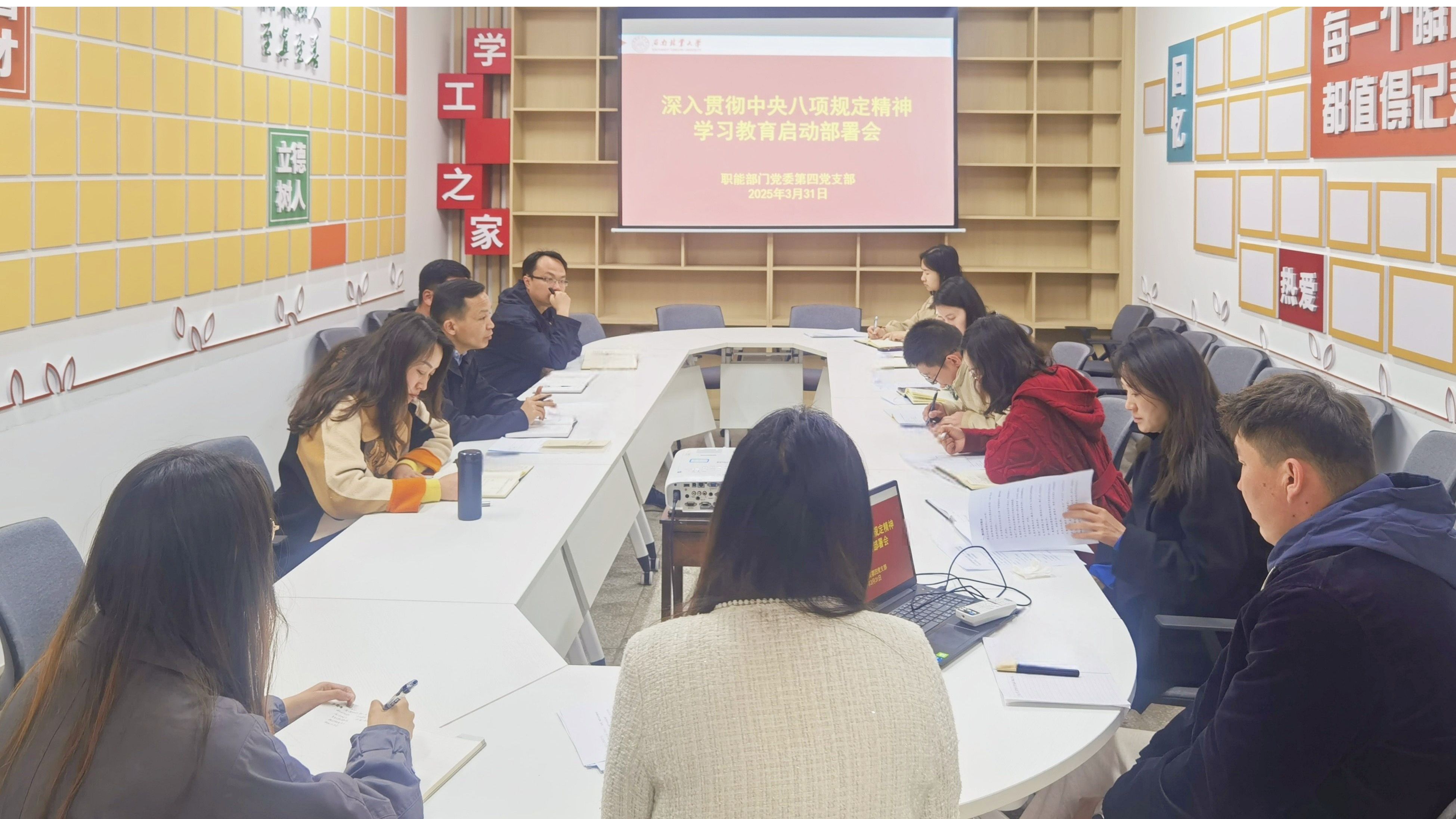 3月31日,职能部门党委第四支部(学生处)召开深入贯彻中央八项规定精神学习教育启动部署会。会议由支部书记徐高峰主持。支部所辖部门各科室负责人参加会议。